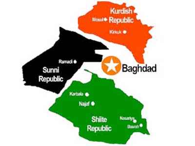 &اعربت الولايات المتحدة عن قلق بالغ منذ الغزو الامريكي للعراق والذي اطاح بالرئيس السابق صدام حسين في عام 2003 ان البلاد ستنقسم الى 3 دول تمثل الفصائل الدينية والعرقية المتناحرة ولكن حسب اراء عدد كبير من المحللين فليس هنالك اى داع لهذا القلق لان العراق تفكك بالفعل.