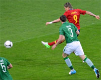 مبكر لمنتخب إسبانيا ,الهدف جاء بعد خطأ دفاعي إيرلندي خطفها فرناندو توريس وأنطلق جهة اليمين ويتجاوز الظهير ويسددها قوية في سقف المرمة كهدف أول لمنتخب إسبانيا .