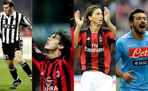 ويحتل السويدي فارع الطول إبراهيموفيتش المرتبة الثانية في قائمة النجوم التي إجتاحت سماء الكرة الإيطالية قبل أن يتجه نحو الليغا وهذه المرة إلى الغريم التقليدي برشلونة.