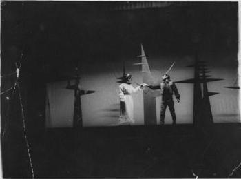مشهد من مسرحية عرس الدم للوركا التي اخرجها جعفر السعدي والديكور لكاظم حيدر