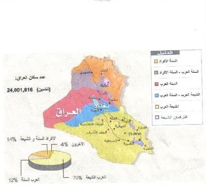(انظر الخارطة ادناه التي اعدها معهد سميشن الامريكي للدراسات الاستراتيجية والتي يظهر فيها بوضوح النسب السكانية حيث السنة العرب كأقلية لاتتجاوز نسبتهم الـ 12 بالمائة كما هو مبين)واذا كان هناك مايبرر للسني التمسك بوضع خارطة العراق بجغرافيتها الادارية الحالية على جدار مكتبه او منزله فما لايمكن فهمه هو قيام بعض الشيعة بنفس الفعل على العكس من الاكراد الذين يتحلون بوعي قومي يغبطون عليه فهم يرفضون وضع اي خارطة على جدران منازلهم سوى خارطة كردستان والى جنبها علم كردستان فهل سيزين الشيعة جدران منازلهم بخارطتهم وبعلم دولتهم ؟ امنية اتمنى ان تتحقق قريبا.