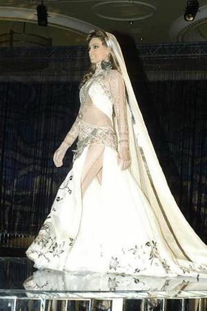 وجاءت فساتين الزفاف قمّة في التألّق والروعة، وإستعمل فيها قماش الدانتيل، وطرّزت بحرفيّة عالية بالمعادن المعتّقة التي تعكس الطابع العربيّ، وجاء أحد الفساتين مميّزاً بتصميمه ونقوشاته، إذ يقترب من الأزياء الأندلسيّة والمغربيّة.