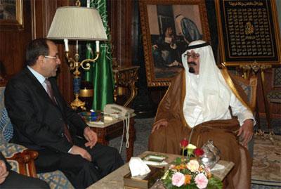 وأكد العاهل السعودي الملك عبدالله بن عبدالعزيز اليوم حرص المملكة على وحدة العراق وسلامة مواطنيه ليعود إلى مكانته الطبيعية بين الدول العربية والإسلامية. جاء ذلك خلال محادثات أجراها العاهل السعودي مع رئيس الوزراء العراقي نوري المالكي الذي قام باطلاع السعودية على الأوضاع في العراق والجهود المبذولة لتحقيق المصالحة الوطنية والحفاظ على وحدة العراق وسيادة أراضيه مشيدا بوقوف السعودية إلى جانب الشعب العراقي.