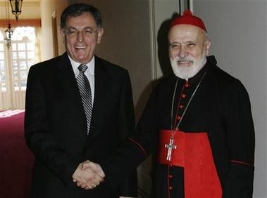 واستقبل البطريرك الماروني الكاردينال مار نصرالله بطرس صفير في بكركي رئيس الحكومة فؤاد السنيورة يرافقه مستشاره الدكتور رضوان السيد ومدير المراسم في القصر الحكومي السفير جيلبير عون.لا وبعد اللقاء، قال السنيورة: quot;نأتي الى هذا الصرح كالعادة لزيارة غبطة البطريرك والتشاور والاستفادة من حكمته ومعرفته، وهذا اليوم أحببت أن أزور غبطته للوقوف على رأيه في هذه المستجدات، وكانت مناسبة لأنقل له ايضًا حثيث حزني الشديد الذي غمرني البارحة عندما تأكد لي ان ليس هناك من امكان لاتمام هذا الاستحقاق الدستوري الذي كان اللبنانيون جميعًا يعولون على أن ينجح ممثلو الامة في التوصل الى توافق والى رئيس وفاقي يكون فوق السلطات ويكون المرجع والحكم لكل اللبنانيين، لكن حزني هذا لن يتحول الى يأس على الاطلاق، لأن هذه الحكومة التي عبرت مرات عديدة بأننا نتطلع بجد واجتهاد ورغبة اكيدة في انجاز هذا الاستحقاق الدستوري والاسهام بكل ما نستطيعه حتى ينجز بما فيه خير لبنان واللبنانيينquot;.