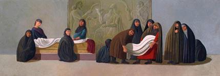 | لوحة للفنان فيصل لعيبي تؤرخ لمآسي عائلات الضحايا العراقيين والمحفوظة لدى مؤسسة الذاكرة |