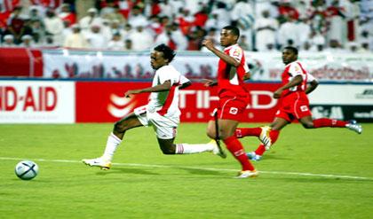 اما المنتخب العماني الذي ظهر امس للمرة الاولى رسميا منذ بطولة كاس الخليج التي فاز بوصافتها فظهر وكأنه شبح للفريق الرهيب الذي امتع محبي الكرة في دورة الخليج ووتاه لاعبوه في الملعب وغاب التفاهم عنهم ربما بسبب ابتعادهم عن بعضهم لفترات طويلة في الاندية التي احترفوا فيها كما غاب الدور المفترض للمدرب ستريشكو رغم كفاءاته المشهود بها. ورغم ذلك اتيحت للفريق بعض الفرص الخطيرة منها تسديدة لفوزي شعبان برأسه من داخل منطقة المرمى في يد الحارس وتسديدة من ضربة حرة ارتطمت بمدافع ووصلت ضعيفة الى الحارس الاماراتي وليد سالم.