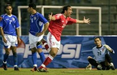 لاعب لبنان يحتفل بهدف التعادل بمرمى الكويت