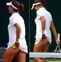 خاصة أثناء محاولاتها مقاومة الهواء الذي تسبب في كشف ملابسها الداخلية، كما التقطت العدسات ملابس اللاعبة الصربية quot;أنا أيفانوفيتشquot; التي بدت ضيقة بشكل مثير، وكانت المشكلة الاكبر في الملابس الداخلية للاعبة السويسرية quot;أيمانويل غاليارديquot; التي بدت قصيرة للغاية بشكل يصعب معه التركيز في لمباراة ونتيجتها وطريقة الأداء الفني ..!!