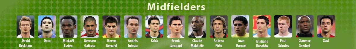 -لاعبو الوسط ... بيكهام (إنكلترا / ريال مدريد) ndash; ديكو (البرتغال / برشلونة) ndash; ايسيان (غانا / تشلسي) ndash; غاتوسو (ايطاليا / ايه سي ميلان) ndash; ستيفين جيرارد (انجلترا / ليفربول) ndash; انيستا (أسبانيا / برشلونة) ndash; كاكا (البرازيل / ايه سي ميلان) ndash; لامبارد (انكلترا / تشلسي) ndash; ماكاليلي (فرنسا / تشلسي) ndash; بيرلو (ايطاليا / ايه سي ميلان) ndash; ريكيلمي (الأرجنتين / فياريال) ndash; كريستيانو رونالدو (البرتغال / مانشستر يونايتد) ndash; بول سكولز (إنكلترا / مانشستر يونايتد) ndash; سيدروف (هولندا ndash; ايه سي ميلان) ndash; زافي (أسبانيا / برشلونة)