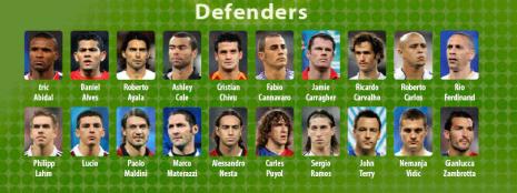 -المدافعون ... أبيدال (فرنسا / ليون) - ألفيس (البرازيل / اشبيلية) ndash;أيالا (الأرجنتين / فالنسيا) ndash; كانافارو (إيطاليا / ريال مدريد) ndash; روبرتو كارلوس (البرازيل ndash; ريال مدريد) ndash; كاراغر (إنكلترا / ليفربول) - كارفاليو (البرتغال / تشلسي) ndash; تشيفو (رومانيا / روما) ndash; آشلي كول (إنكلترا / تشلسي) ndash; ريو فرديناند (إنكلترا / مانشستر يونايتد) ndash; فيليب لام (المانيا / بايرن ميونخ) ndash; لوسيو (البرازيل / بايرن ميونخ) ndash; مالديني (إيطاليا / ايه سي ميلان) ndash; ماتيراتزي (ايطاليا / إنتر ميلان) ndash; نيستا (إيطاليا / ايه سي ميلان) ndash; كارلوس بويول (اسبانيا / برشلونة) ndash; سيرجيو راموس (أسبانيا / ريال مدريد) جون تيري (إنكلترا / تشلسي) ndash; فيديتش (صربيا / مانشستر يونايتد) ndash; زامبروتا (إيطاليا / اليوفنتوس)