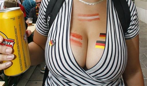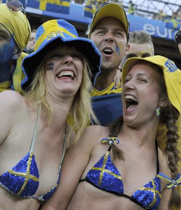 جلال محمد جلال : كرة القدم عالم من الفنون الممتزج بالجنون ..سواء كان هذا الجنون نتاج الهوس الجماهيري لتك المستديرة .. او من خلال الطرق المختلفة التي يتففن بها مشجعي الفرق لتجشيع فريقهم .. وهم في ذلك لا يدخرون وسعًا في تقديم كل ما هو مثير وغريب وجميل أحيانًا... فتارهم تارة يرفعون القبعات... وتارة يلونون أجسادهم... وتارة يلبسون ملابس غريبة... و في يورو 2008 كانت الاجساد البشرية وسيطًا للتعبير عن مدى حب الفرق المشاركة... فتلونت الأجساد بعلم بلادها... لتقدم لوحات فنية جمالية... إختارت إيلاف بعضًا من هذه اللقطات،وهيتحملطابعًا أنثويًا خاصًا:
