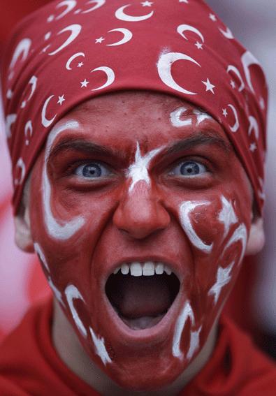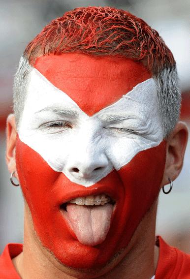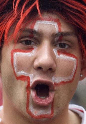 إيلاف : دعني أرى الألوان والخطوط التي نقشتها ريشة فنان على وجهك... لكي أقول لك من تشجع ومن تؤازر.. وإلى أي بلد تنتمي ... نعم قد لا يكون الإنتماء في هذه الحالة بمسمى الجنسية المكتوب في وثيقة سفرك .. قد يكون انتماءً كرويًا واعجابًا بمنتخب بلد ما ... ولكن يظل لدينا انطباع رائع ممتزج بتقديرنا لقيم الحب والانتماء والذوبان في عشق الوطن وهو الإنطباع الذي نأخذه عن هؤلاء الذين يقدمون وجوههم كساحات ولوحات وجداريات رسم وتلوين قربان لأوطانهم أو المنتخبات التي أحبوا طريقتها في الأداء ... إنها متعة كرة القدم .. إنها متعة الإقبال على الحياة بأحاسيس البهجة والفرح ... شكرًا لكرة القدم ... شكرًاليورو 2008