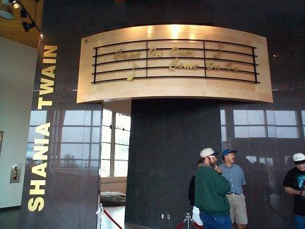 وعلى الرغم من أن المتحف تم إفتتاحه في يونيو عام 2001 الا ان توين لم تتمكن من زيارته قبل الآن. وقالت معتذرة لابناء البلدة ان زيارتها للمتحف تأخرت بسبب ظروف حملها وولادتها ومن ثم ارتباطها بجولة عالمية للترويج لأبومها Up ولكنها سعيدة اليوم بتواجدها بينهم ولقائهم من جديد.