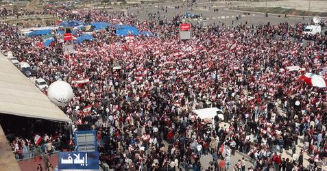 فداء عيتاني من بيروت: كان من الصعب تحديد رقم للمتظاهرين المنتشرين بين ساحة مقتل رئيس الحكومة الالسبق رفيق الحريري في الرباع عشر من شباط فبراير الماضي، في منطقة الفينيسا، وبين ما بات يعرف بـ"ساحة الحرية" التي تشكل مركز تجمع المعارضة في اطار "شتاء بيروت" وعلى امتداد الشوارع التي تفصل المكانين كان المتظاهرين ينتشرون على طول ما يقارب 2.5 كيلومتر وفي شوارع يبلغ اتساع بعضها الخمين مترا، اضافة إلى الارصفة وجوانب الطرق، كان تقدير الحشد صعبا من صباح اليوم الاثنين، فالاعلام اللبنانية تغطي الكل، ثمة مئات الالوف من البشر الا انهم مختفين تحت الاعلام التي لا تشي لنا بكثافة الانتشار. ومن المظاهرة إلى جبل لبنان كانت القوات السورية تتحرك بتباطؤ شديد، نلتقي زملاء اعلاميون سبق ان عملنا معا على تغطية حروب إسرائيل على لبنان، اليوم يغطون من اعلى جبل لبنان تحركات الجيش السوري.![]()