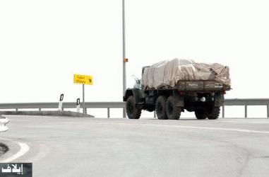 | شاحنة عسكرية سورية محملة بالعتاد تنسحب نحو الشرق |