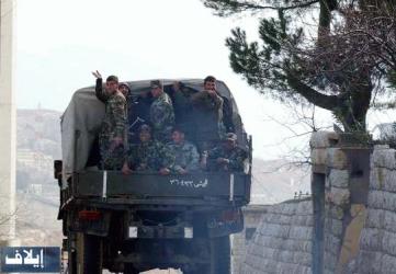 | جنود سوريون تعطلت شاحنتهم اثناء تعزيزهم موقع في الجبل يلوحون لإيلاف |