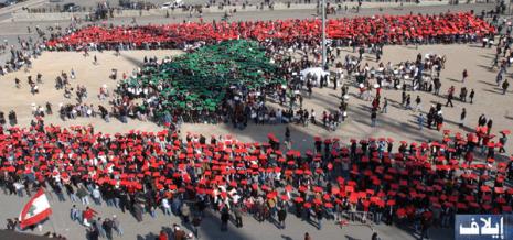 فداء عيتاني من بيروت: للحظة وعند الساعة الثانية والنصف من بعد ظهر اليوم بالتوقيت المحلي (الثانية عشرة بتوقيت غرينتش) بدا وكأن المعارضة اللبنانية باطرافها الرئيسية المشاركة في تحرك اليوم ستفشل في رسم الوان الراية الوطنية بالبشر، بمفردها، بدا انها تحتاج إلى جزء من حشد الاعتصام الذي كان منذ ايام يلبي دعوة الامين العام لحزب الله حسن نصرالله، لتكمل هذه المعارضة رسم العلم اللبناني. الا ان تقدم الوقت واحتشاد المزيد من المواطنين المعارضين اديا إلى اكتمال رسم العلم اللبناني. وانتابت المشاركين حالة من النشوة بانجاز جديد تقوم به المعارضة، خلال اربع وعشرين ساعة تمكنوا من الاعداد والتنفيذ لمشروعهم الذي كانوا يلخصونه عبر مكبر الصوت "اكبر علم في اصغر دولة".![]()