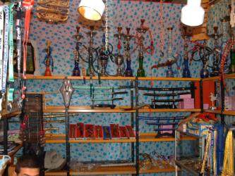في " أكشون" يوتوبوري، محلات تُعرض فيها أجود أنواع الشيّش، بألوانها الزاهية، والى جانبها يجد الزبون مختلف المعسلات من "التفاحتين" الى " المعسل البحريني الشهير.