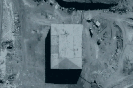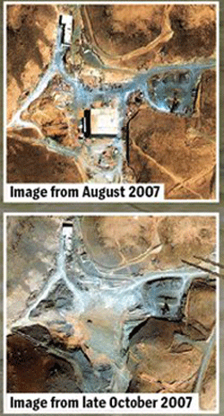 صورة التقطت عن الاقمار الصناعية للمفاعلقبل الغارة الاسرائيلية في 6 أيلول (سبتمبر) 2007. إسرائيل علمت بالمشروع السريّ بعد أن سرقت معلومات من الجهاز المحمول لقائد سوري رفيع