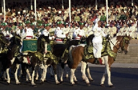 وقد أطلقت المدفعية سبع طلقات إيذانا بانطلاق هذا الحفل الميمون الذي حضره عدد من كبار الشخصيات والمدعوين الذين قدموا من مختلف أنحاء العالم. اما زوجة العاهل المغربي فبقيت بعيدة عن الانظار.