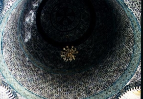 *إفريز قاشاني يتضمن رقما قرآنيا آخر، كتب بخط ثلثي جميل يتضمن سورة الإسراء ويلتف هذا الإفريز حول عنق القبة الخارجي.