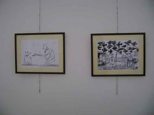 كما التقينا الفنان علي المندلاوي الذي قال: المعرض يقام بمناسبة عيد الكاريكاتير العراقي، وهو خطوة من ان نلتم نحن الكاريكاتيريين، وهو محاولة لاعادة التأسيس والتجمع، نريد ان نتكثف عسى ان نعمل مشروعنا (بيت الكارتون او الكاريكاتير) ولدينا الكثير من الافكار في اذهاننا، ومن اجل المشاركات الدولية، نريد ان نؤسس تجمعا جديدا يضم كل الرسامين العراقيين المهمين وعلى ضوئه من الممكن ان نؤسس جمعية او رابطة، المهم ان هذه الخطوة نعملها من اجل ان نقدر ان نعرض باسم العراق خارجيا في معارض نحن غائبون عنها جدا، فالغياب العراقي رهيب ولدينا طاقات وخبرات كبيرة، ثم اننا لدينا مسؤولية تجاه الاجيال الجديدة، تجاه الشباب، فإن كان عندنا تجمع سيكون لدينا مكان، وهذا المكان من الممكن ان نقيم فيه معارض شهرية، نعمل فيه دورات للشباب حتى نخلق اجيالا جديدة مبدعة.