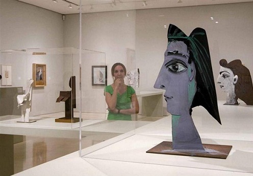 وفي صالات اُخَر ترى جمعاً آخر أمام لوحة من لوحاته ويستفيض رجلٌ في الكلام عنها، وعلى مقرية منهم خمسة ٌ وعشرون تلميذاً من المرحلة الإبتدائية يجلسون على البلاط النظيف قبالة لوحة معقدة من المرحلة التكعبية والمعلمة تتكلمُ على تفصيلات اللوحة وتسمع الى سؤالاتهم ونقاشهم. هنا ذرفت عيناي دمعاً، دمعة فرح على العناية بالطفل وتهيئته للمستقبل وغرس جمال الفن فيهم. ودمعة ً اخرى على تلميذ عالمنا العربي المحروم من مثل هذه الثقافة المعرفية ويُحشّدُ روعه بالخرافات والأكاذيب والعادات البالية والعدوانية الطائفية والدينية والسياسية. كانت أناملي تمسح تلك الدمعات وأنا اغادر تلك الصالة الى سواها. وفي كلّ صالة ترى هذا المهرجان المعرفي، المعلماتُ برفقة تلاميذهن في مختلف المراحل العمرية الجالسين على أرضية الصالة يُصيخون السمع اليهن، ويدور بينهم وبينهن الحواراتُ والأسئلة والإجابات. فما أعجبَ الموقفَ، فنحنُ الكبارُ لا نكاد نفهم مغازي لوحات بيكاسو بينما يؤتى