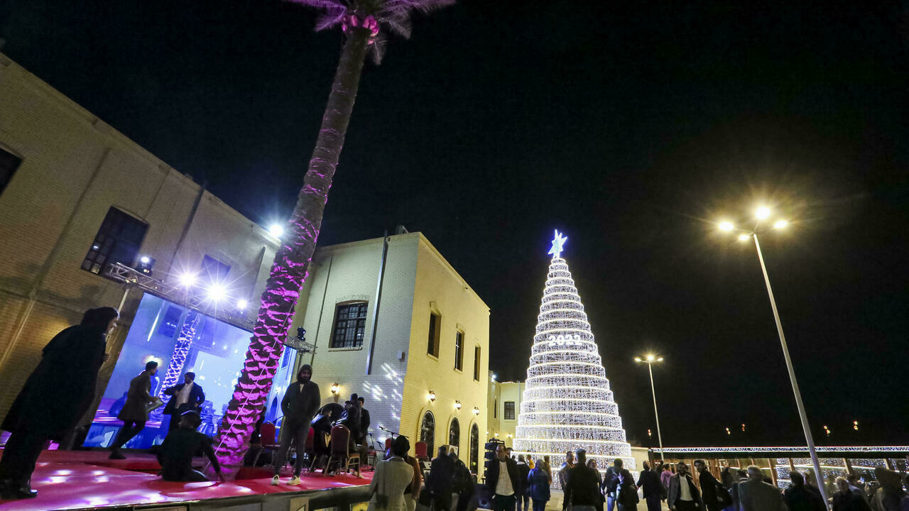 على ضفاف دجلة، تعزف فرقة موسيقية الألحان العراقية التقليدية، بالعود والدفّ والغيتار والبيانو، فيما ارتفعت الألعاب النارية في السماء.