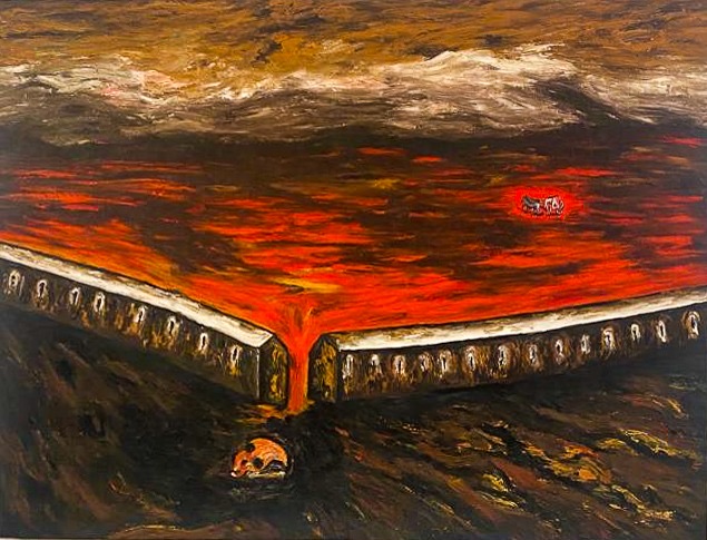 لوحة بعنوان The Houses Are Going Downhill (المنازل تتجه نزولاً) بريشة الفنان إنزو كوتشي ضمن مجموعة ماراموتي الخاصة