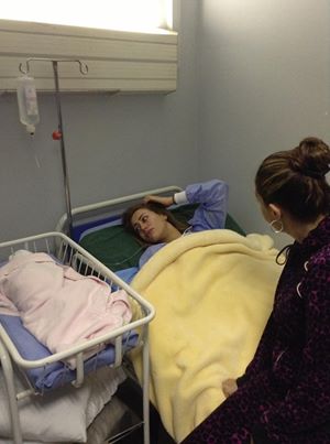 | غادة عبد الرازق مع إبنتها وحفيدتها في المستشفى |