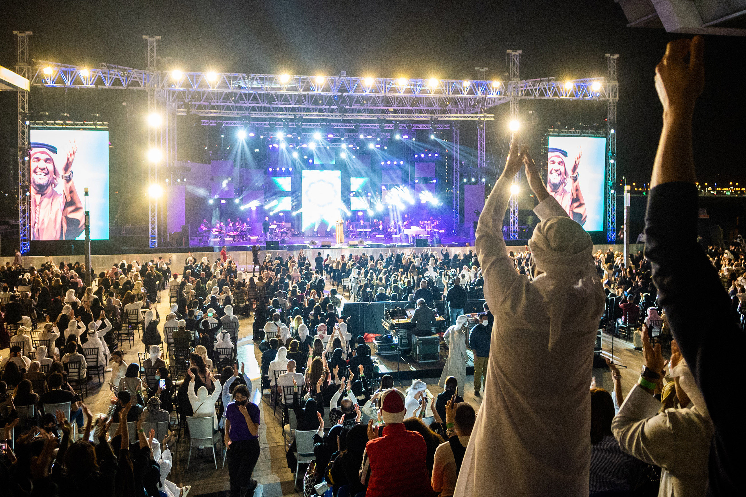 إيلاف: استقبل الفنان الإماراتي حسين الجسمي العام الجديد 2022 في جزيرة الماريه بأبوظبي بحضور الآلاف من جمهوره من مختلف الجنسيات والثقافات، وتفاعل حمل الكثير من البهجة والمحبة مع أنغام أغنياته المتنوعة التي أداها برفقة فرقته الموسيقية بقيادة المايسترو د. سعيد كمال.