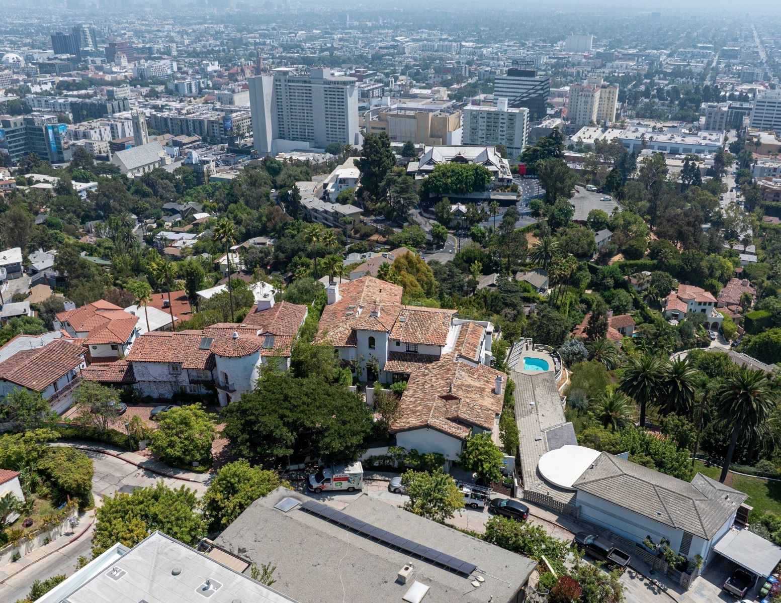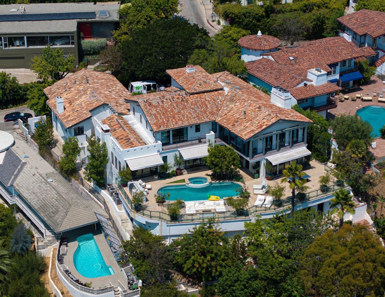 يقع المنزل الذي تبلغ مساحته حوالي 8385 قدمًا مربعًا خلف بوابات ذات حماية متعددة الطبقات في منطقة Outpost Estates في هوليوود هيلز، حيث كان من بين السكان السابقين أورلاندو بلوم وبن أفليك.