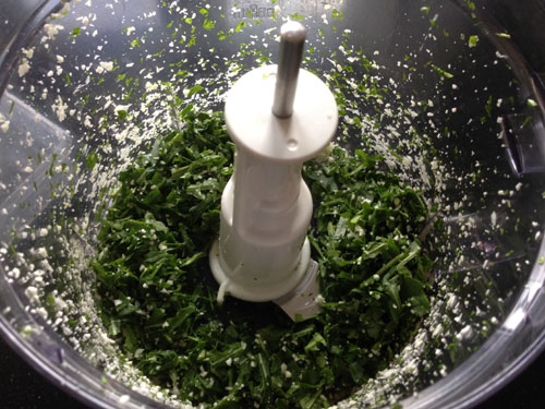 - 1 باقة كبيرة لكل من الشبت والبقدونس والكزبرة والروكا مقطعة في الخلاط
