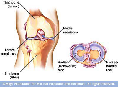 أما حين يتمزق غضروف أو غضروف هلالي فإنك تستطيع سماع صوت الانكسار أيضا خصوصا إذا كان بسبب إصابة ما لكن في حالات أخرى تتنامى الأعراض تدريجيا مع تزايد ألم الركبة وتزايد تورمها. وقد تنقفل الركبة جاعلة من الصعب مد الساق بشكل كامل وقد يكون صعبا القرفصة أو الانحناء مع غضروف هلالي متمزق.