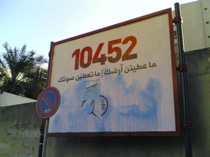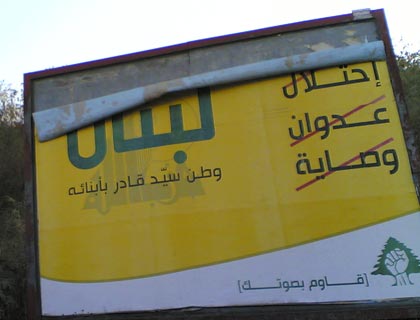 طريق المطار القديمة تشهد أكثر من 5 اعتداءات على لوحات quot;لائحة القرار الوطني المستقلquot; الـ14 آذارية وأبرز من فيها المرشح الشيعي عن بعبدا باسم السبع. والغريب أنّ لوحات 14 آذار الحمراء لم تمس أبدا وهي تتفوق بالعدد على لوحات السبع ومن معه.