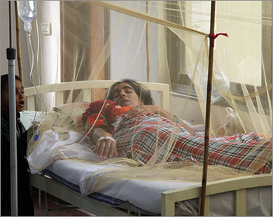 تنتشر حمى quot;الضنكquot; بواسطة مجموعة من الفيروسات، تنتقل عن طريق البعوض، الذي يتكاثر في المياه المخزونة والراكدة والمتبقية، وأهم أعراض quot;الضنكquot; تشبه الانفلونزا، خاصة في البداية كما يؤكد لـquot;إيلافquot; الدكتور أحمد محمود اختصاصي الحميات، من وجود زكام، وارتفاع في درجات الحرارة، وصداع حاد، ثم تظهر آلام شديدة في المفاصل والعضلات ndash; سبب التسمية حمى العظم المتكسرة-، إلى جانب آلام في المعدة يصاحبها غثيان أو إسهال، وبعد مرور يوم أو اثنين يظهر طفح جلدي جديد، ينتشر في كل الجسم ما عدا الكفين والقدمين، ويصاحبه ارتفاع في درجة الحرارة مصحوب بحالة ضعف عام، كما توجد حالة متقدمة من الحمى تسمي النزفية، وفيها تكون درجة الحرارة المرتفعة مصاحبة لوجود نزيف من اكثر من مكان.