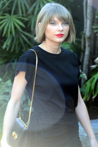 - تايلور سويفت : بدت أنيقة وهي تحمل حقيبة كتف من إبداع فيرساتشي أثناء تجولها في غرب هوليوود، لوس أنغلوس، يوم الـ 24 من شهر شباط / فبراير الماضي.
