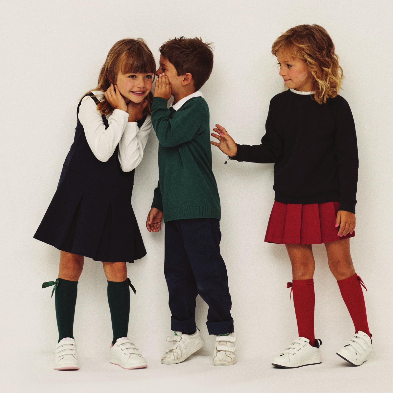 وتواكب التشكيلة أحدث توجهات الموضة العصرية مع تصاميم مستوحاة من الأزياء المدرسية الكلاسيكية، حيث يطغى على التشكيلة طابع البريبي الأنيق مع لمسات عصرية تبرز في التنانير المزودة بكسرات والبلوزات المزودة بياقات مرتفعة أو الجوارب العالية وتصميم المريول الأنيق. وتجمع التشكيلة التصاميم الرياضية وغير الرسمية لتقدم للأطفال قطع عملية أساسية بتدرجات الأزرق الداكن والأحمر القرمزي والأخضر الغامق والأبيض.