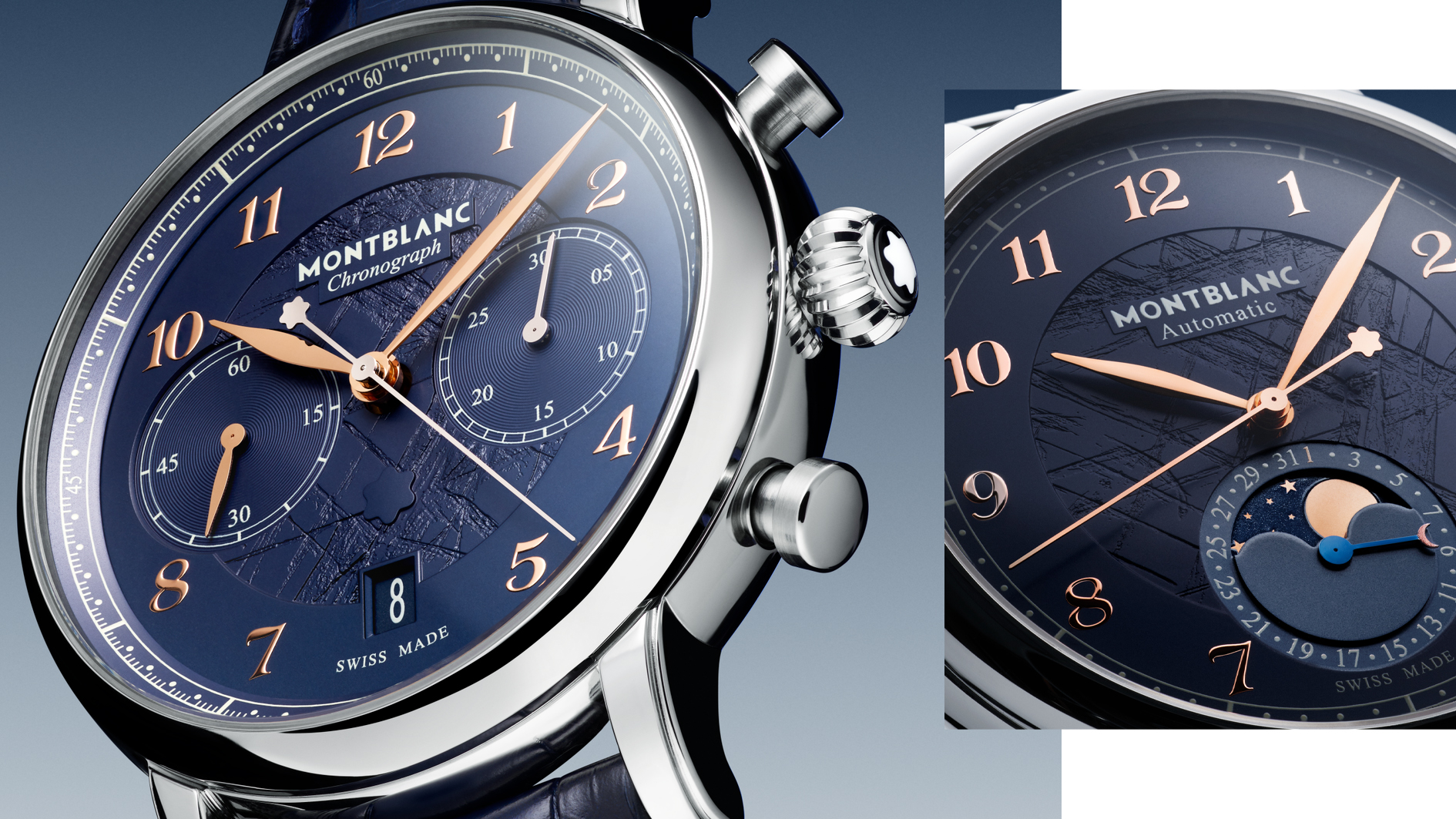 هناك ثلاثة طرازات رئيسية محدودة الإصدار في هذه التشكيلة الجديدة الخاصة من "مون بلان ستار ليجاسي LE1786 بلو" – ساعة "أوتوماتيك ديت" بعلبة قياسها 39 ملم، وساعة "مونفيز" بعلبة قياسها 42 ملم، وساعة "كرونوغراف" بعلبة قياسها 42 ملم. وترتبط جميع الطرازات بالجبل الأبيض مع مينا جليدية جديدة باللون الأزرق الداكن. وتم تزيين المينا بتصميم جليدي متعدد الطبقات مستوحى من Mer de Glace، وهو النهر الجليدي الرئيسي للجبل الأبيض. وقد ابتكر وسط قرص المينا باستخدام ختم خاص يعيد تكوين هذا القوام الجليدي، ويحتفل بـ "ساعة الغسق"، وهو التدرج اللوني للأزرق الكثيف الذي يترامى على النهر الجليدي عند الغسق، عندما يبزغ القمر وتبدأ النجوم في السطوع.
