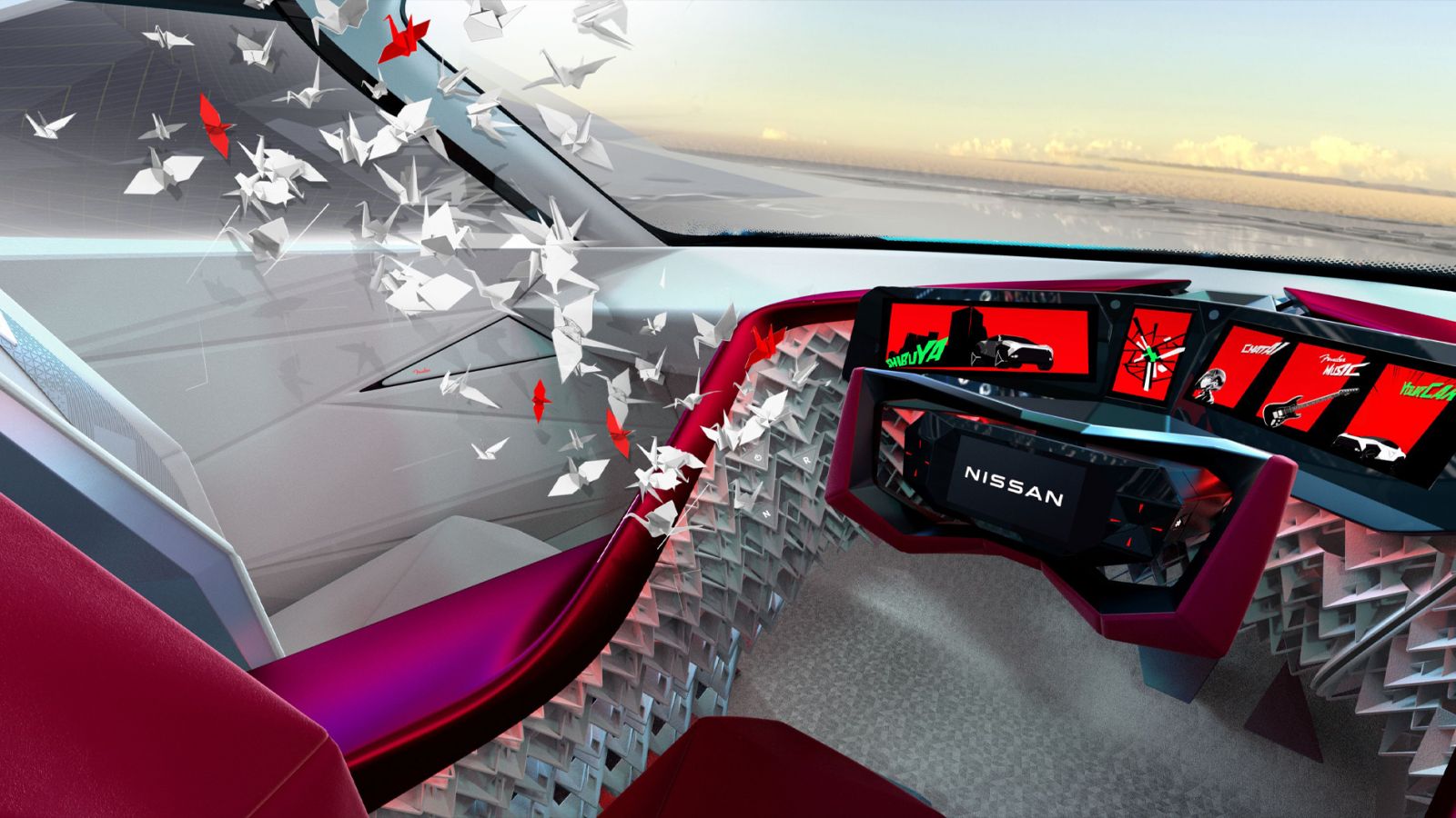 أما من داخل، فتعكس السيارة، العناصر المصممة على طراز "الأوريجامي" والذوق الياباني لإبداع مساحة داخلية، تجمع بين الجماليات الرقمية والفنية معًا. فعلى سبيل المثال، يمكن للكاميرات الموجودة على متن السيارة التقاط المناظر المحيطة بالسيارة واستخدام الذكاء الاصطناعي لتحويلها إلى صور بأسلوب "المانغا" أو أنماط رسومية وفقًا لتفضيلات مالك السيارة. كما يمكن بعد ذلك، عرض تلك الصور على شاشة ثلاثية العرض تحيط بواجهة السائق في قمرة القيادة، مما يوجد مساحة يندمج فيها الواقع مع عالم الميتافيرس.