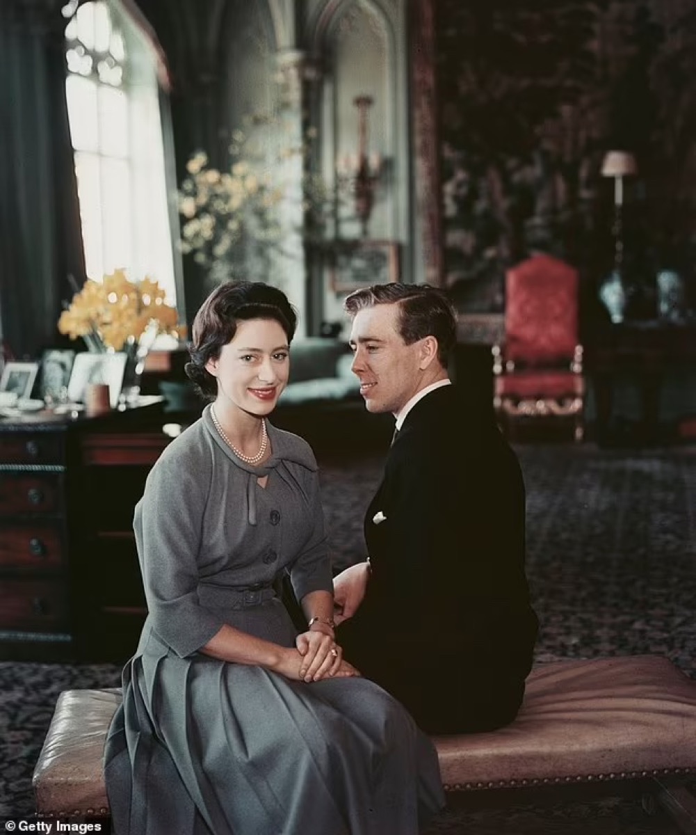صورة للأميرة مارجريت وأنتوني أرمسترونج-جونز معاً في رويال لودج لصور خطوبتهما في عام 1960