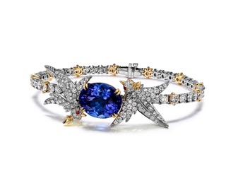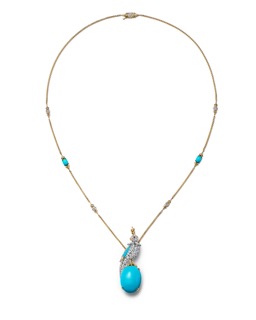 يشمل طقم التنزانيت عقدًا وسوارًا وأقراطًا، أما طقم الفيروز فيتميز بعقد فريد يتدلّى فيه طائر ماسيّ يحمل خيوطًا من الفيروز المصقول بأسلوب "كابوشون"، وتُزينه ريشات من الذهب والألماس، مع قطرة فيروز نهائية دراماتيكية. ويضم الطقم أيضًا قلادة، بروش وخاتم، تعيد جميعها تفسير الطائر الأيقوني بأساليب غير تقليدية.