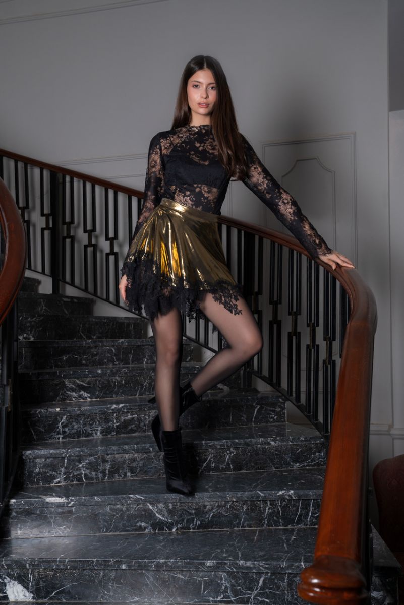 المصممة كريستين مسراني تدرك هذا التوازن بالفطرة. في تصاميمها، يشكّل الأسود قاعدة نحتية جريئة، بينما تضيف التفاصيل الذهبية قوة ودفئًا ولمسة من البذخ العصري. كل قطعة تبدو محسوبة بعناية، ومصممة لنساء يقدن بثقة ويخترن أزياءهن بوعي وهدف.