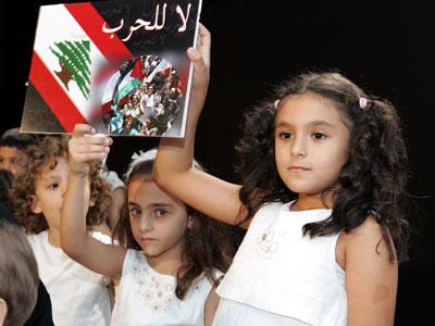 جانب من الأطفال ولافتة quot;لا للحربquot;