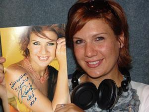 | رانيا الكردي مع بوستر ألبومها الجديد |
