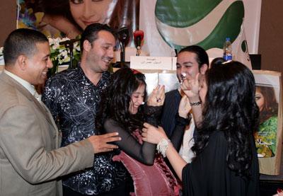 هذا وقد قامت أسيل عمران في نهاية المؤتمر بقطع قالب الكيك مع فريق عمل شركة روتانا المتواجد خلال المؤتمر وشقيقتها التي داعبتها بأسلوب عفوي بوضع حلوى الكيك على أنفها مما تسبب في خلق جو جميل بين الحاضرين وأمام عدسات المصورين.
