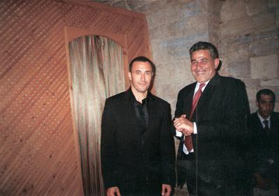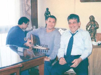 | الغريري والساهر في جلسة غنائية ويبدو خلفهما الموزع الموسيقي فاضل فالح |