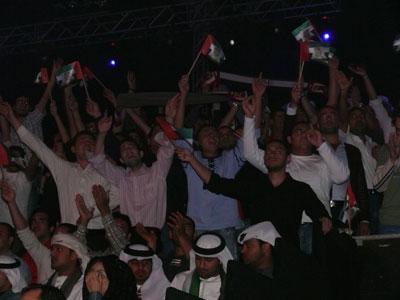 بعد الإنتهاء من الأغنية الأولى أعربت نوال الكويتية في حديثها مع الجمهور عن إمتنانها وسعادتها بمشاركة أهل إمارة دبي باحتفالات الذكرى الثانية لتولي الشيخ محمد بن راشد مقاليد الحكم وقالت: quot;أتمنى أن تبقى دبي دائمًا عامرة، وهنيئًا لكم بهذا الأب الذي لم يبخل على أهله وشعبه بأي شيءquot;.