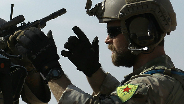 وأعلنت الولايات المتحدة في وقت سابق أنها تقوم بعمليات عسكرية بالتعاون مع مقاتلين أكراد، لكن هذه هي المرة الأولى التي تظهر فيها صور توثق هذا التعاون، علاوة على إظهارها الجنود الأمريكيين يحملون شارة المقاتلين الأكراد.