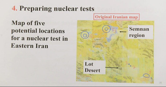 كما تبين الوثائق أن الإيرانيين كانوا يبحثون عن موقع للتجارب النووية تحت الأرض، ولكن كان عليهم بناء القنبلة أولًا. كما أن التجربة النووية لا تعتمد على القدرة العلمية وحدها، بل على قرار من القيادة السياسية.